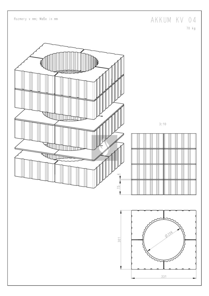 A Romotop MAMMOTH akkumulációs szett segítségével növelhető a kandallónk hőtároló képessége, a kandallóbetét használatát követően még hosszú ideig sugározza a hőt. A maximális hőátadás érdekében a hőtároló gyűrűk között fémlamellák vannak elhelyezve, ez növeli a hőtárolás sebességét. Telepítése egyszerű, a kandallóbetét felső részén a füstcső körül kell elhelyezni. 200 mm-es füstgázelvezetéssel rendelkező kandallóbetéthez használható. A hőtároló szett súlya: 70 kg.