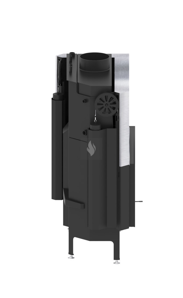 A vízköpeny az égéstér felett helyezkedik el. A test speciálisan kialakított hátsó része lehetővé teszi a másodlagos levegő bevezetését az égő felső részébe, ezáltal növelve a készülék hatékonyságát a füstgázok elégetésével. Az utánégető rendszer csökkenti a káros anyagok kibocsátását a környezetbe, és növeli az üzemanyag-hatékonyságot.