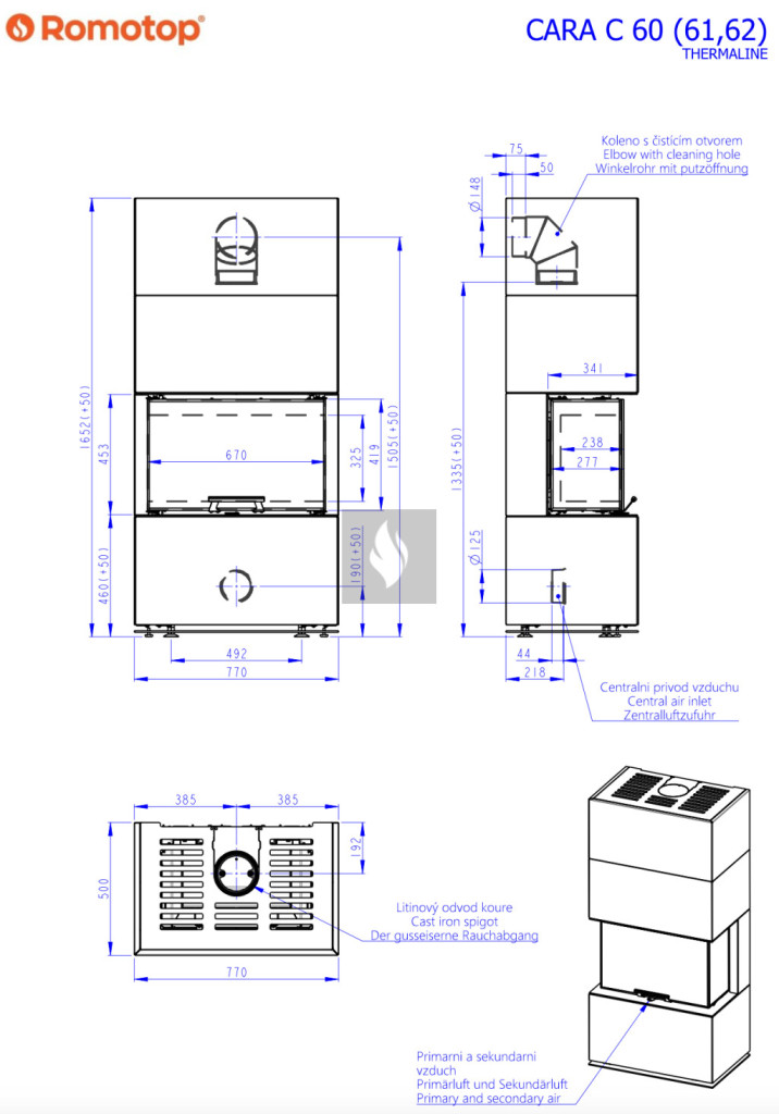 A Romotop kandallókályhák meghatározó jellemzője a letisztult, modern vonalvezetés. A speciális samott anyaggal bélelt égéstér megvédi a kályhát a vetemedéstől, valamint javítja az égési folyamat hatékonyságát. A lángok a világos színű égőtér faláról visszatükröződve teljes fényükben ragyoghatnak, a látvány még akkor is káprázatos, amikor a tűztérben már csak a pislákoló parázs marad. A további fontos jellemzője az irányított elsődleges és másodlagos égés, a légmosó üvegtisztító-rendszer, és a felső füstgáz-kivezetés. Az egyes kandallókályhákban akár 40 cm-es fahasábokat is tüzelhetünk. A Romotop kandallók Csehországban készülnek, megfelelnek a hatályos EU-szabványoknak és követelményeknek. Romotop - teljesítményre tervezve.