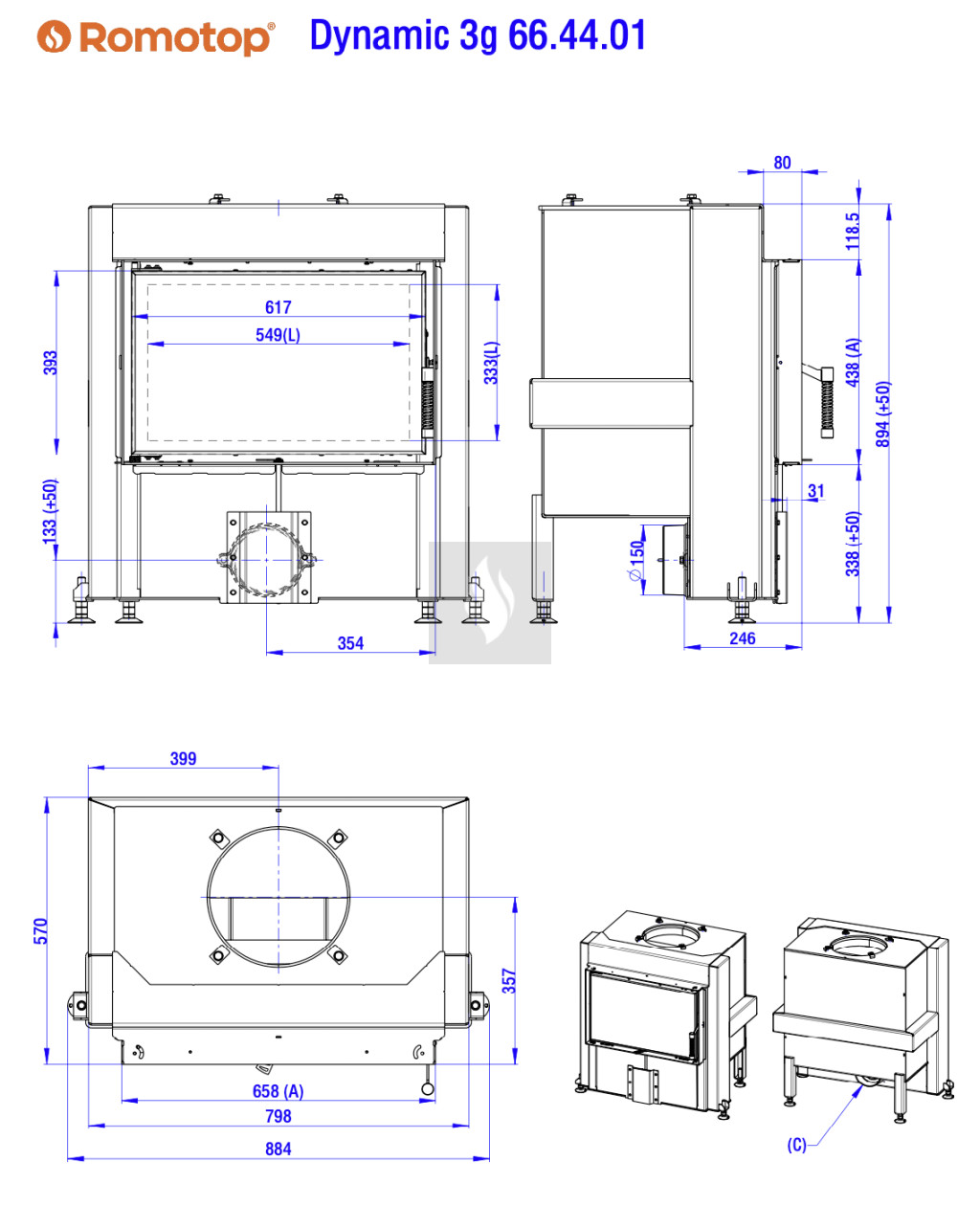 Romotop DYNAMIC 3G 66.44.01 Légfűtéses kandallóbetét