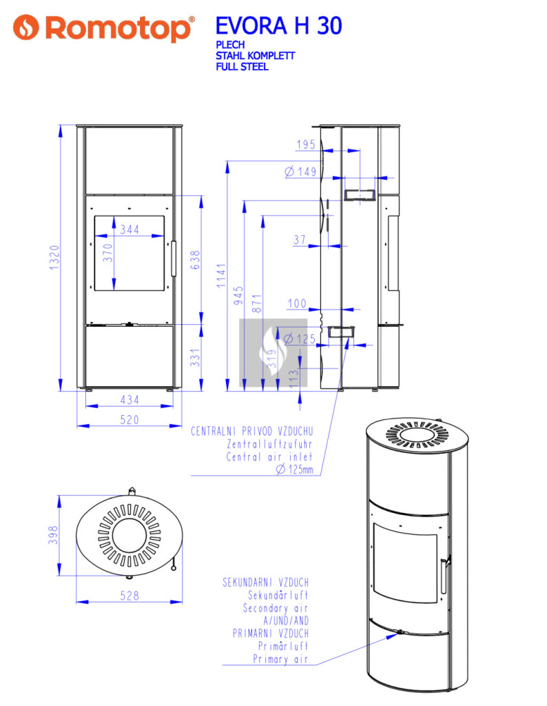 Romotop EVORA H 30 lemez Kandallókályha - bővíthető hőtárolóval