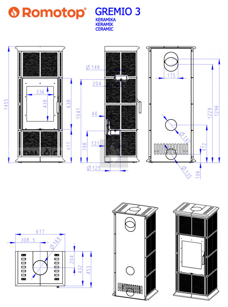 Romotop GREMIO 3 kerámia Kandallókályha - bővíthető hőtárolóval