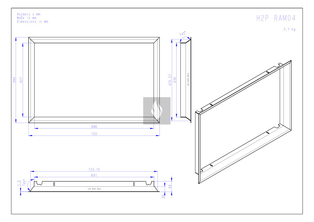 RAM04 süllyesztett beépítő keret Romotop HEAT H2P kandallóbetéthez