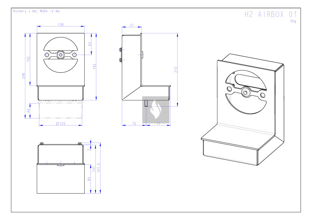 Megkönnyíti a külső légbevezetés (EAI) alulról történő csatlakoztatását. A kapcsolódó termékekben szereplő kandallóbetétekhez alkalmas.