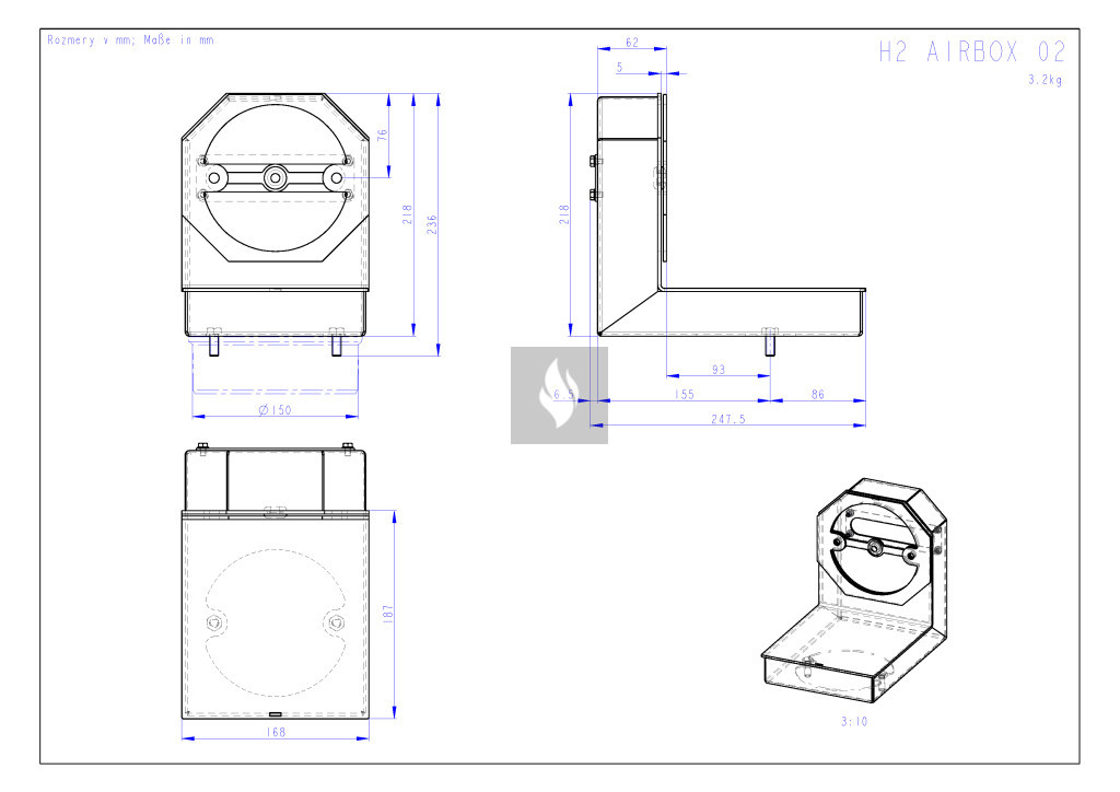 Megkönnyíti a külső légbevezetés (EAI) alulról történő csatlakoztatását. A kapcsolódó termékekben szereplő kandallóbetétekhez alkalmas.