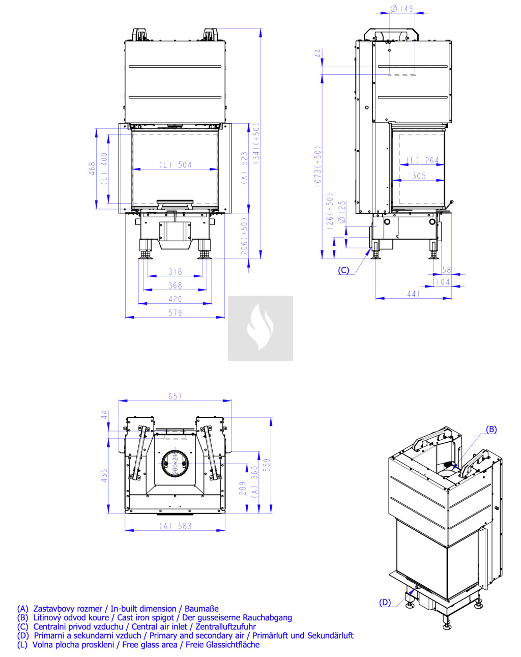 Romotop HEAT C 3G L 50.52.31.24 Légfűtéses kandallóbetét