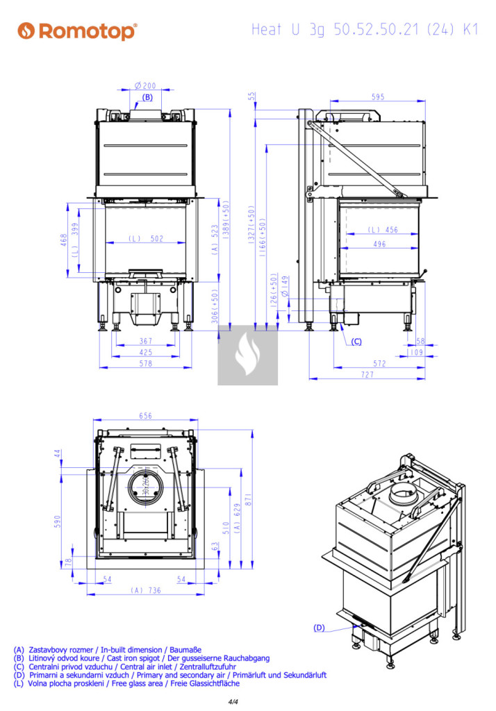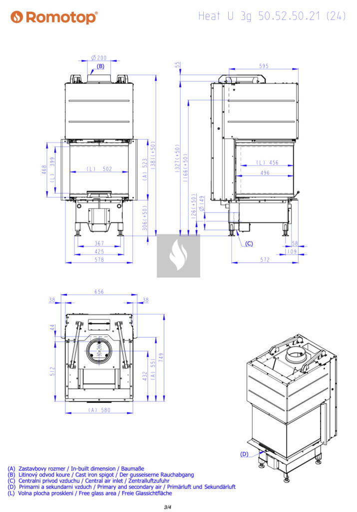 Romotop HEAT U 3G L 50.52.50.26 Légfűtéses kandallóbetét fekete béléssel