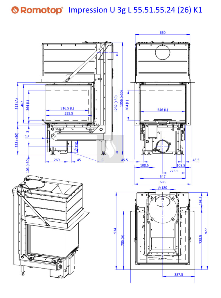 Romotop IMPRESSION U 3g L 55.51.55.24 K1 Légfűtéses kandallóbetét K1 kerettel