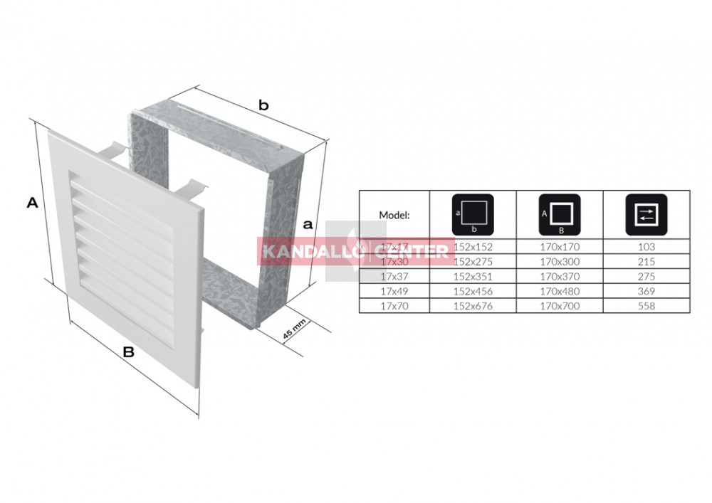 Kratki Fresh Szellőzőrács Fekete 17X17cm