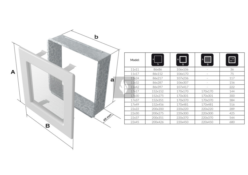 Az egyszerű, szabályos lyukú szellőzőrácsok anyaga strapabíró rozsdamentes acél. Nincsnek kitéve sem a magas hő, sem más lehetséges behatások okozta sérüléseknek sem. A porfestéses eljárásnak köszönhetően a felületen nem alakulnak ki elszíneződések vagy más felszíni sérülések. Kínálatunkban több méretben is színben is megtalálja őket.