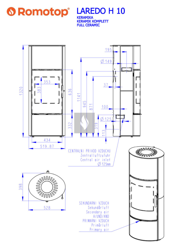 Romotop LAREDO H 10 kerámia Kandallókályha - bővíthető hőtárolóval