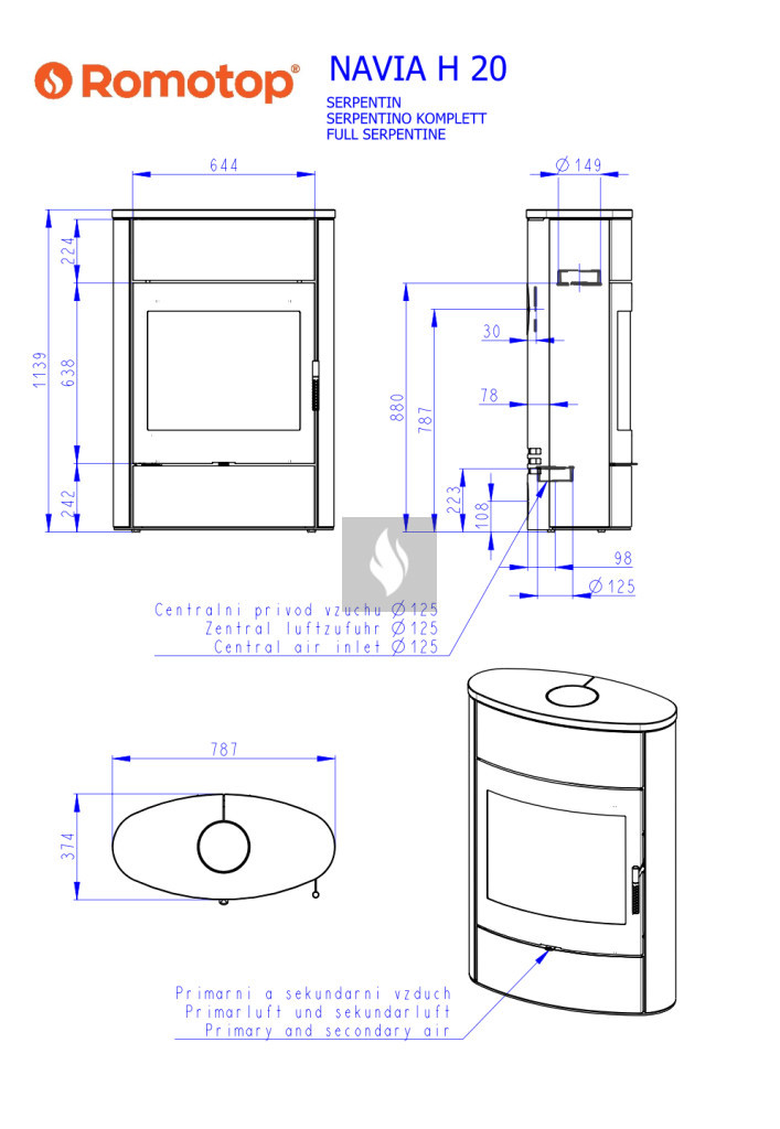 Romotop NAVIA H 20 zsírkő Kandallókályha - bővíthető hőtárolóval