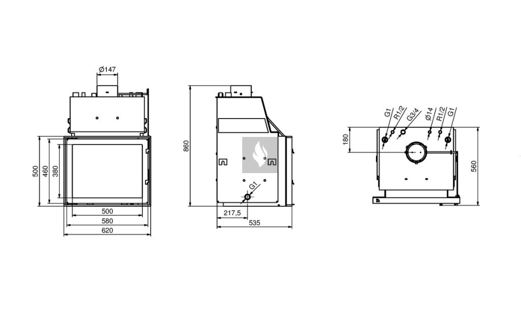 Firetechnic PanAqua 15 Vízteres kandallóbetét, Oldalra nyíló ajtóval. Üvegezés típusa: Síküveges. 15,0 kW névleges teljesítménnyel.