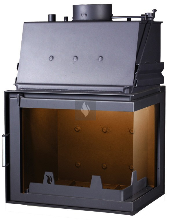 Vízköpenyes, vízteres kandallóbetét Lehetőség van szükség esetén a tűztér bélelésére, mely csökkenti a pára, illetve kátrány kicsapódást, valamint növeli a tűztér élettartamát. Nyílt, vagy zárt fűtési rendszerhez. További opciók: külsőlevegő csatlakozás.