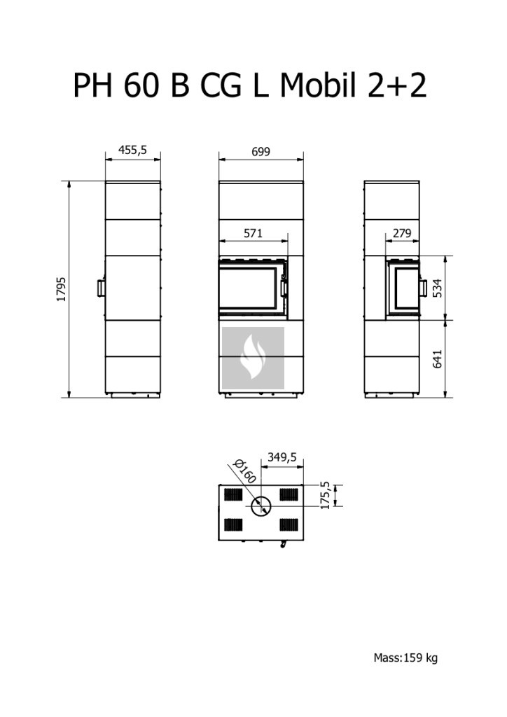 Firetechnic Pantech 60 BCG L Mobil 2+2 fehér (bal) design kandalló