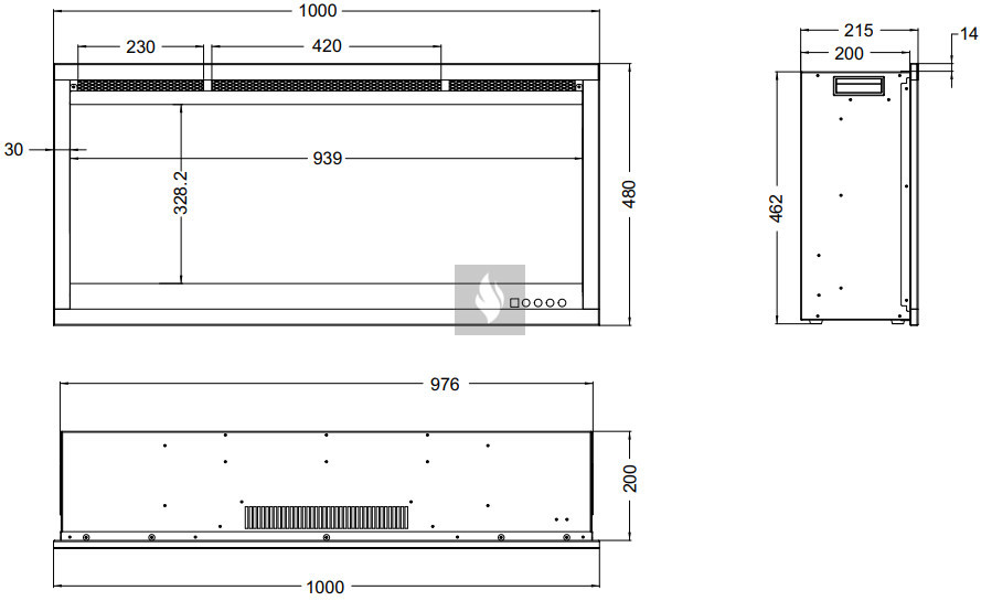 RHONE 100 3D Beépíthető elektromos kandalló, falra is szerelehető