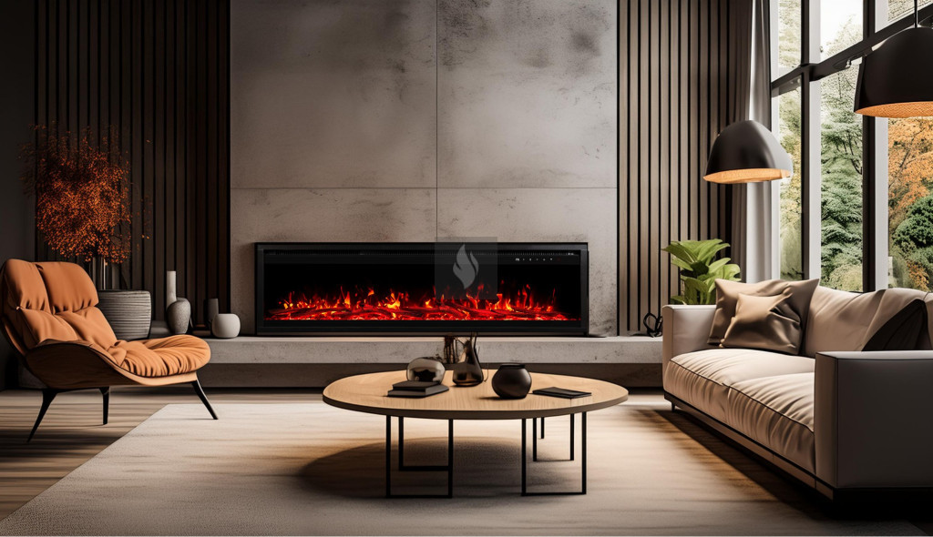 RHONE 160 3D Beépíthető elektromos kandalló, falra is szerelehető