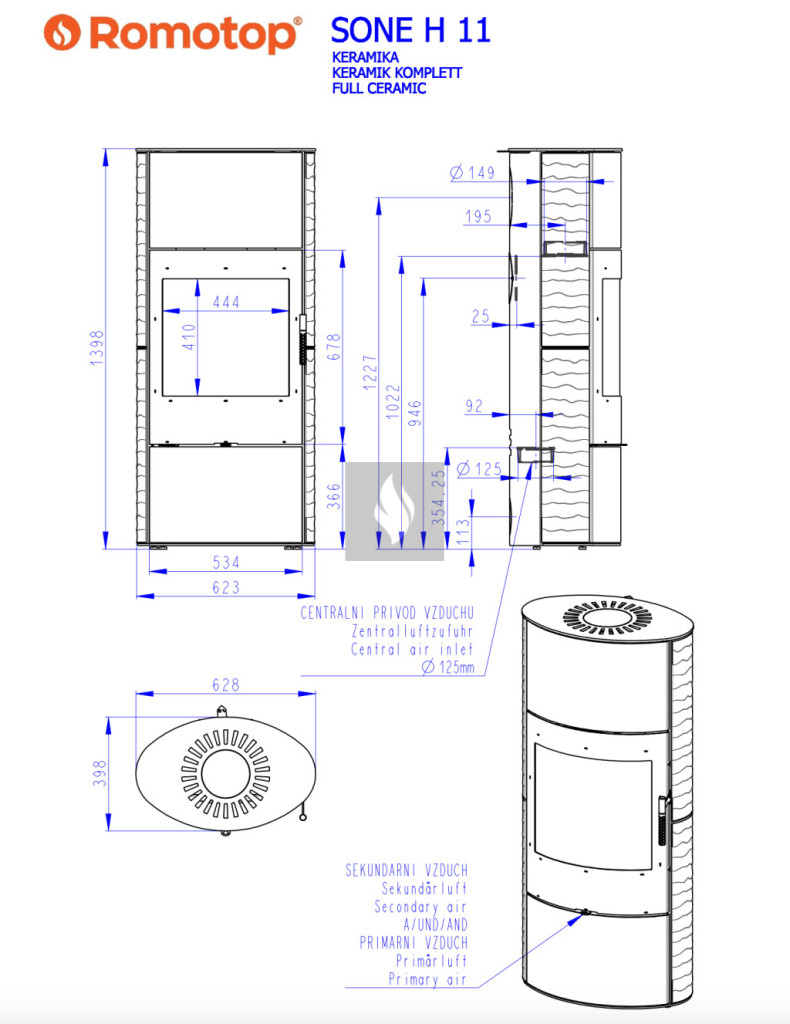 Romotop SONE H 11 Hullámos kerámia Kandallókályha - bővíthető hőtárolóval