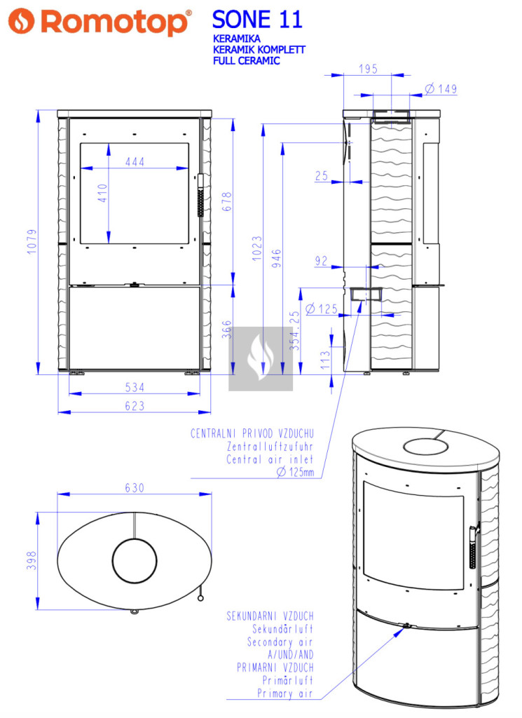 Romotop SONE 11 Hullámos kerámia Kandallókályha
