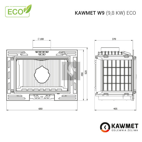 A KAWMET W9 (9,8 kW) ECO öntvény kandallóbetét egy klasszikus öntvény kandallóbetét az ECO sorozatból. Ennek a KAWMET öntvény kandallóbetétnek számos előnye van, amelyek közül a legfontosabb a környezetbarát tervezési követelményeknek való megfelelés, a tökéletes kialakítás és a nagy teljesítmény.