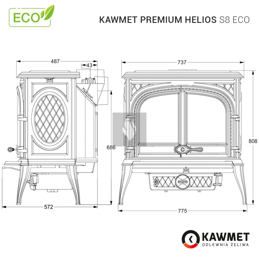 A KAWMET Premium HELIOS S8 ECO öntvény kandallókályha egy klasszikus öntvény kandallókályha a PREMIUM sorozatból. Ennek a KAWMET öntvény kandallókályhának számos előnye van, amelyek közül a legfontosabb a környezetbarát tervezési követelményeknek való megfelelés, a tökéletes kialakítás és a nagy teljesítmény.