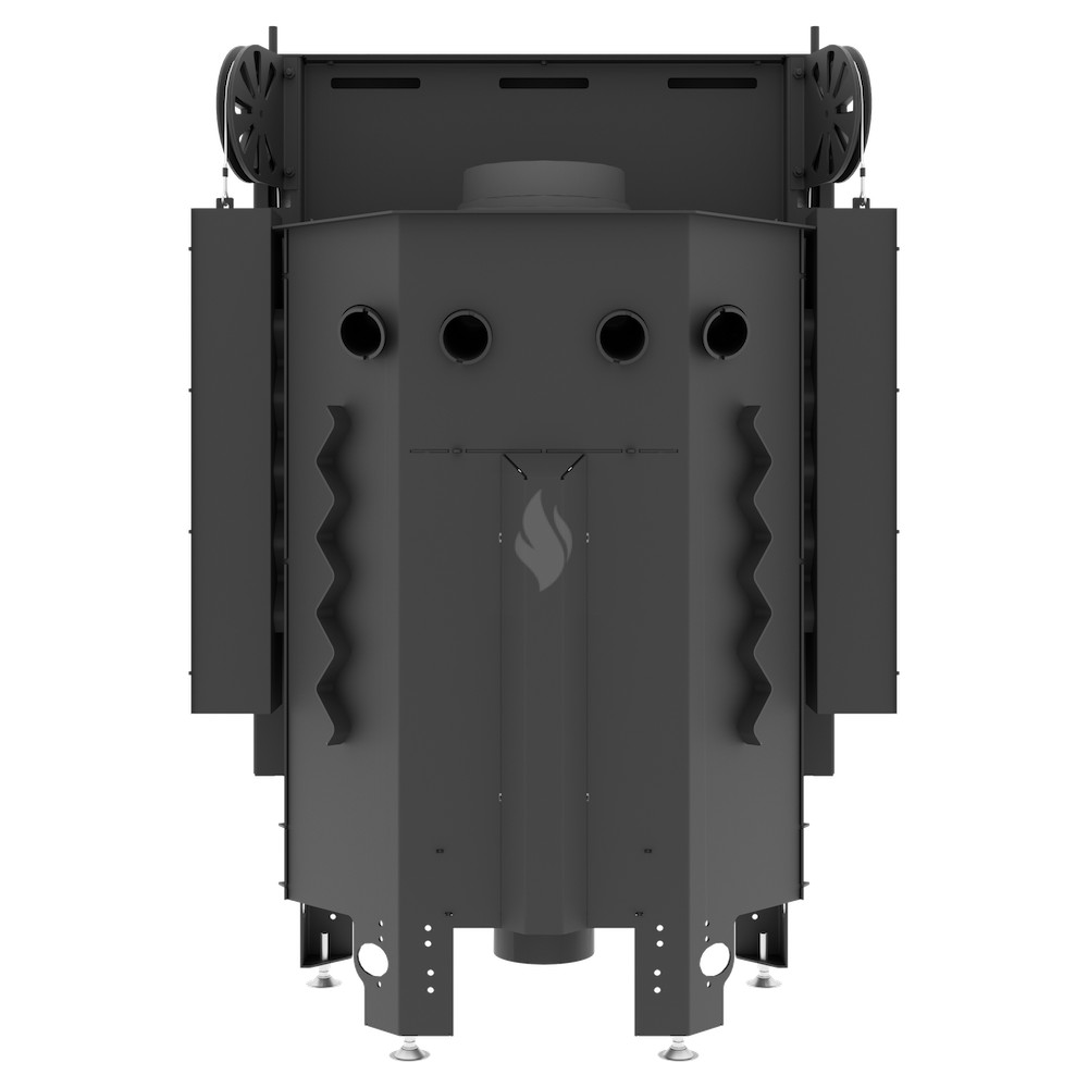 Az ø180 / 200 / 220 / 250 mm-es füstcső biztosítja a kandalló és a kéménycsatorna szoros csatlakozását, biztosítva a megfelelő égést és növelve a hőcsere területét. A hőcsövek növelik a hőcserélési és felhalmozási területet (modelltől függően 3-6 db). Az acél ajtó megnövelt merevségű profilból készült, ami garantálja az ajtó szorosságát és szilárdságát. A hőálló kerámiaüveg (DECOR üveg) akár 800°C-ig ellenáll a működési hőmérsékletnek, és opcionálisan dupla üvegezési rendszerben is elérhető.