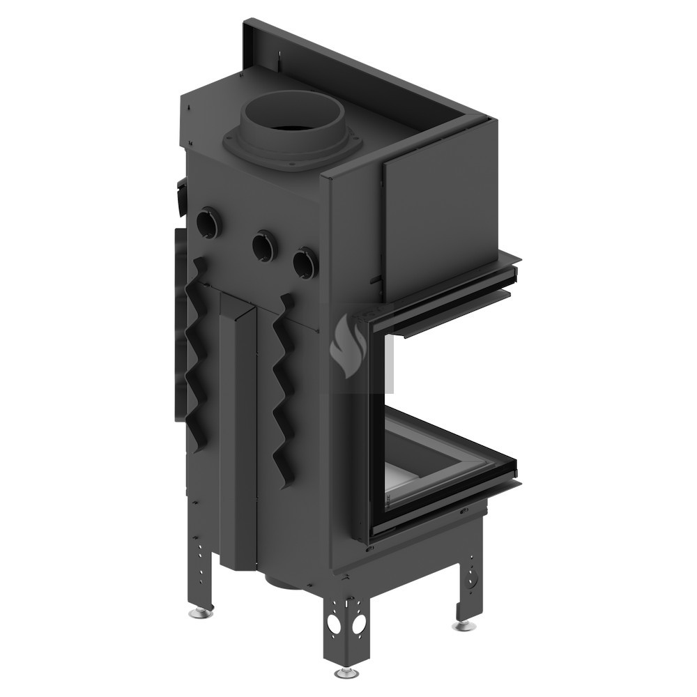 Az ø180 / 200 / 220 / 250 mm-es füstcső biztosítja a kandalló és a kéménycsatorna szoros csatlakozását, biztosítva a megfelelő égést és növelve a hőcsere területét. A hőcsövek növelik a hőcserélési és felhalmozási területet (modelltől függően 3-6 db). Az acél ajtó megnövelt merevségű profilból készült, ami garantálja az ajtó szorosságát és szilárdságát. A hőálló kerámiaüveg (DECOR üveg) akár 800°C-ig ellenáll a működési hőmérsékletnek, és opcionálisan dupla üvegezési rendszerben is elérhető.