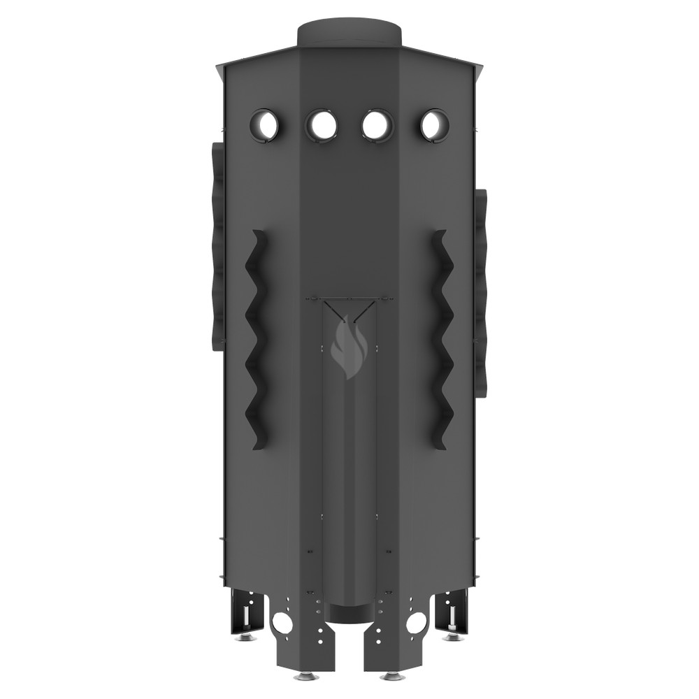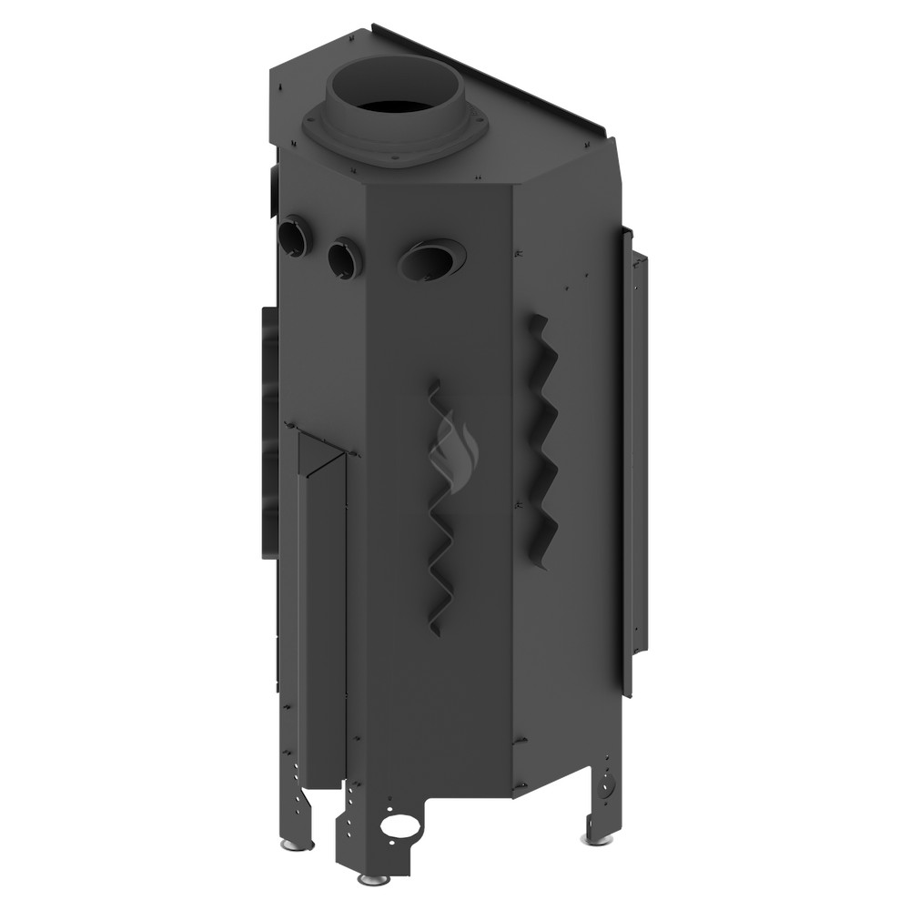 Az ø180 / 200 / 220 / 250 mm-es füstcső biztosítja a kandalló és a kéménycsatorna szoros csatlakozását, biztosítva a megfelelő égést és növelve a hőcsere területét. A hőcsövek növelik a hőcserélési és felhalmozási területet (modelltől függően 3-6 db). Az acél ajtó megnövelt merevségű profilból készült, ami garantálja az ajtó szorosságát és szilárdságát. A hőálló kerámiaüveg (DECOR üveg) akár 800°C-ig ellenáll a működési hőmérsékletnek, és opcionálisan dupla üvegezési rendszerben is elérhető.