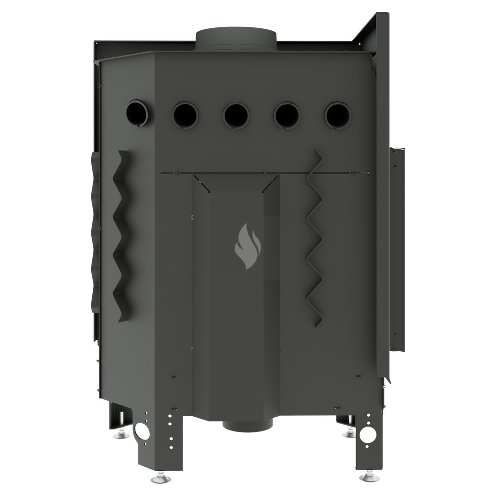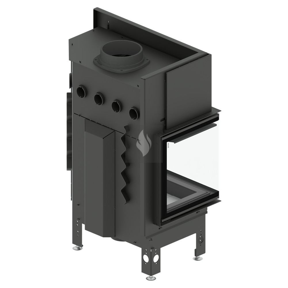 Az ø180 / 200 / 220 / 250 mm-es füstcső biztosítja a kandalló és a kéménycsatorna szoros csatlakozását, biztosítva a megfelelő égést és növelve a hőcsere területét. A hőcsövek növelik a hőcserélési és felhalmozási területet (modelltől függően 3-6 db). Az acél ajtó megnövelt merevségű profilból készült, ami garantálja az ajtó szorosságát és szilárdságát. A hőálló kerámiaüveg (DECOR üveg) akár 800°C-ig ellenáll a működési hőmérsékletnek, és opcionálisan dupla üvegezési rendszerben is elérhető.