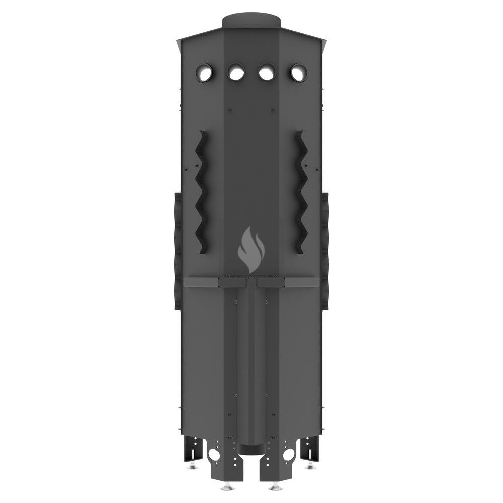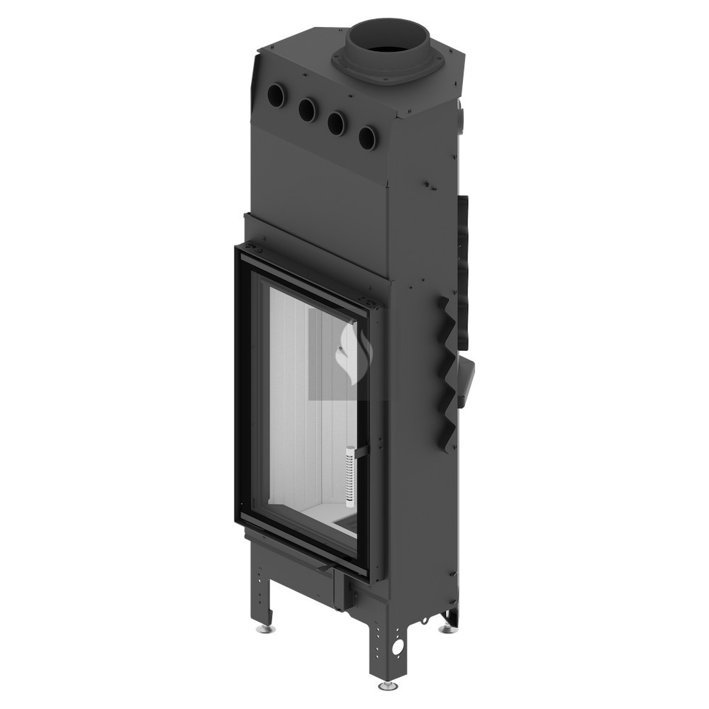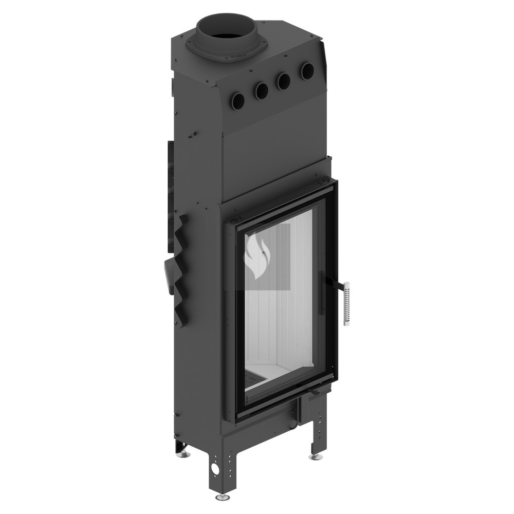 Az ø180 / 200 / 220 / 250 mm-es füstcső biztosítja a kandalló és a kéménycsatorna szoros csatlakozását, biztosítva a megfelelő égést és növelve a hőcsere területét. A hőcsövek növelik a hőcserélési és felhalmozási területet (modelltől függően 3-6 db). Az acél ajtó megnövelt merevségű profilból készült, ami garantálja az ajtó szorosságát és szilárdságát. A hőálló kerámiaüveg (DECOR üveg) akár 800°C-ig ellenáll a működési hőmérsékletnek, és opcionálisan dupla üvegezési rendszerben is elérhető.