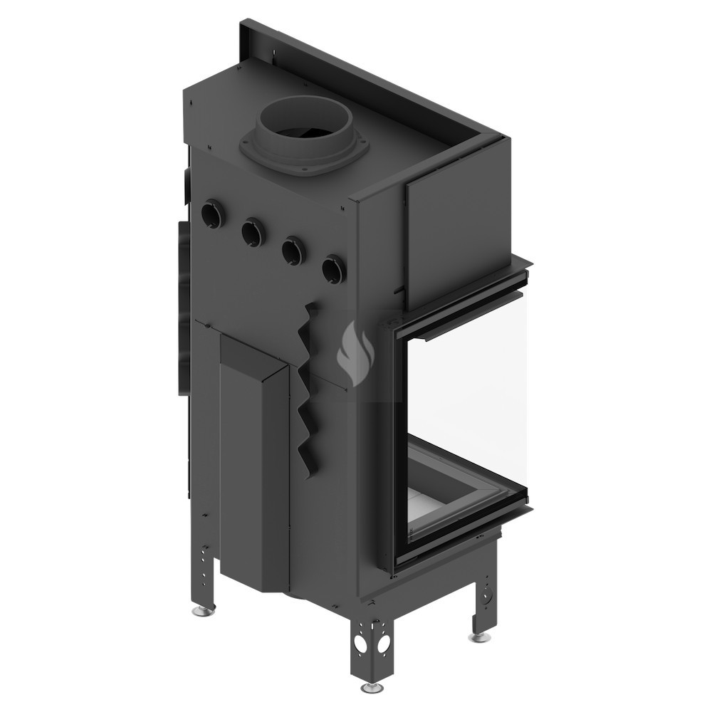 Az ø180 / 200 / 220 / 250 mm-es füstcső biztosítja a kandalló és a kéménycsatorna szoros csatlakozását, biztosítva a megfelelő égést és növelve a hőcsere területét. A hőcsövek növelik a hőcserélési és felhalmozási területet (modelltől függően 3-6 db). Az acél ajtó megnövelt merevségű profilból készült, ami garantálja az ajtó szorosságát és szilárdságát. A hőálló kerámiaüveg (DECOR üveg) akár 800°C-ig ellenáll a működési hőmérsékletnek, és opcionálisan dupla üvegezési rendszerben is elérhető.