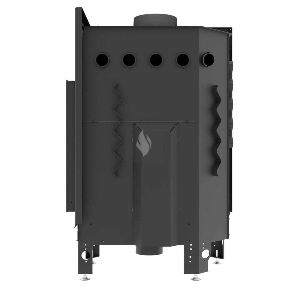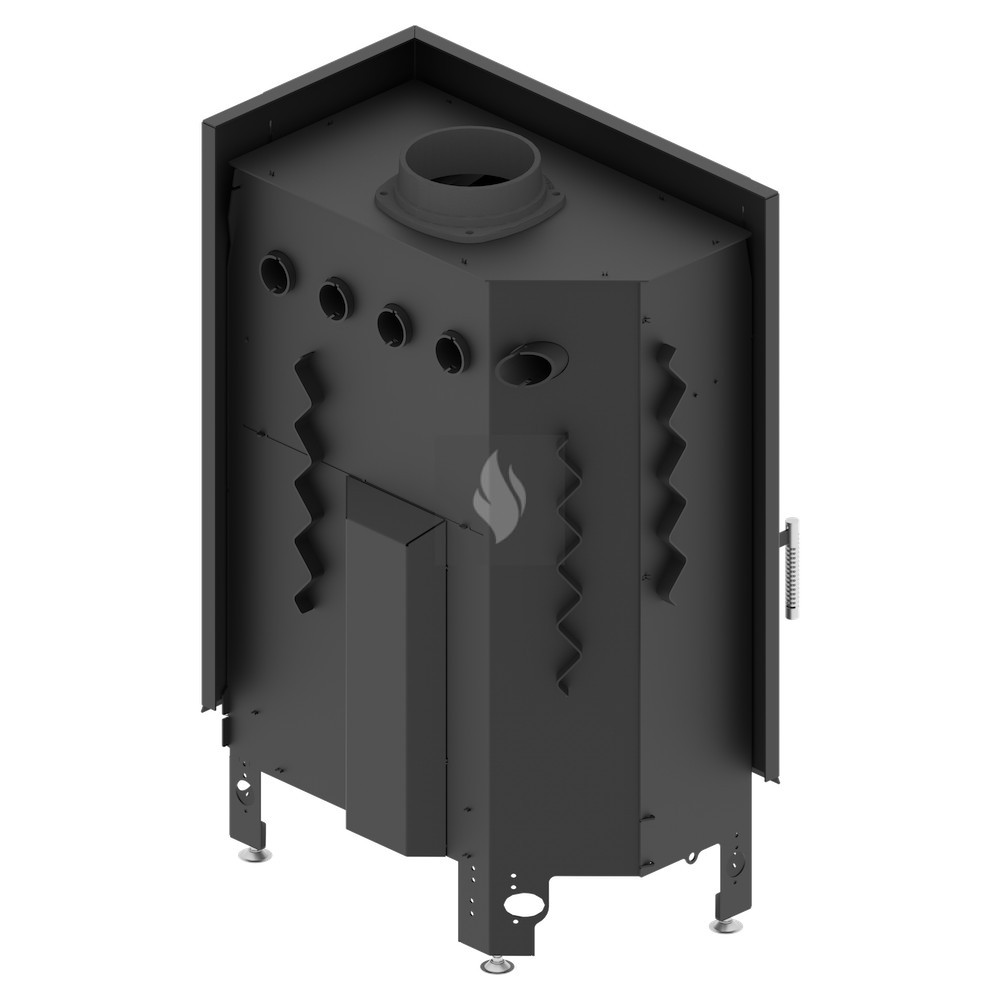 Az ø180 / 200 / 220 / 250 mm-es füstcső biztosítja a kandalló és a kéménycsatorna szoros csatlakozását, biztosítva a megfelelő égést és növelve a hőcsere területét. A hőcsövek növelik a hőcserélési és felhalmozási területet (modelltől függően 3-6 db). Az acél ajtó megnövelt merevségű profilból készült, ami garantálja az ajtó szorosságát és szilárdságát. A hőálló kerámiaüveg (DECOR üveg) akár 800°C-ig ellenáll a működési hőmérsékletnek, és opcionálisan dupla üvegezési rendszerben is elérhető.