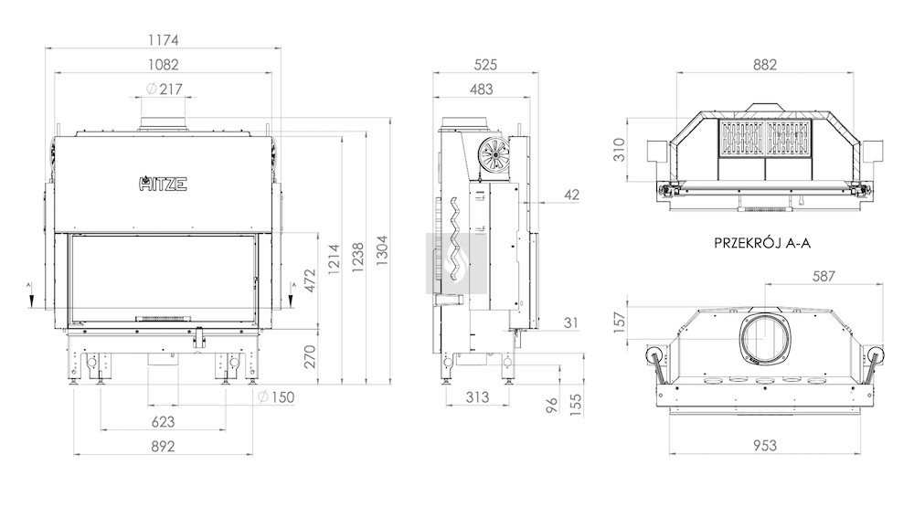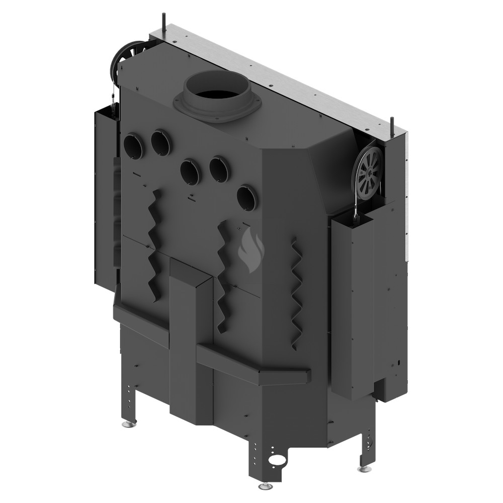 Az ø180 / 200 / 220 / 250 mm-es füstcső biztosítja a kandalló és a kéménycsatorna szoros csatlakozását, biztosítva a megfelelő égést és növelve a hőcsere területét. A hőcsövek növelik a hőcserélési és felhalmozási területet (modelltől függően 3-6 db). Az acél ajtó megnövelt merevségű profilból készült, ami garantálja az ajtó szorosságát és szilárdságát. A hőálló kerámiaüveg (DECOR üveg) akár 800°C-ig ellenáll a működési hőmérsékletnek, és opcionálisan dupla üvegezési rendszerben is elérhető.