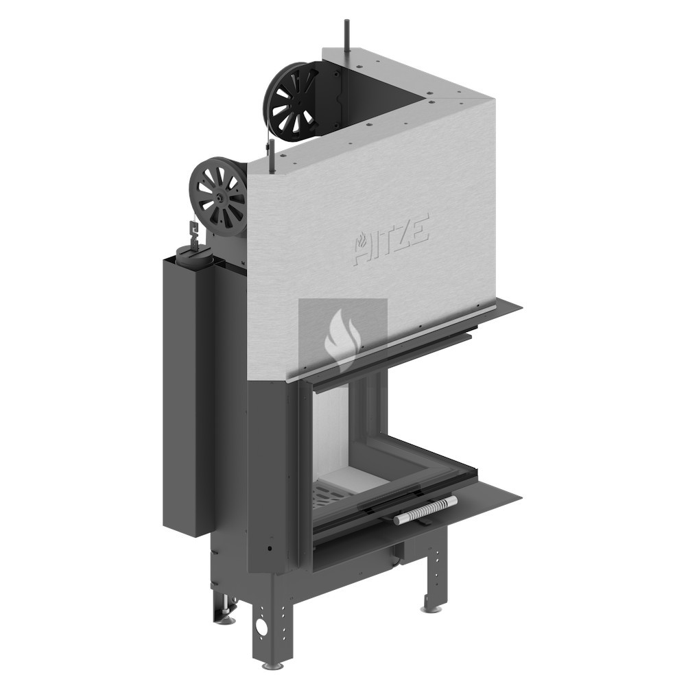 A ø125 / 150 mm-es légbevezető nyílás egy állítható fojtószeleppel simán szabályozza a kandalló belsejében az áramlást. Az állítható lábak biztonságos és stabil elhelyezést biztosítanak a kandallóbetét számára. Az opcionálisan +10 cm-es emelési lehetőséggel és +/- 3-5 cm-es beállítási lehetőséggel további rugalmasságot kínálnak.