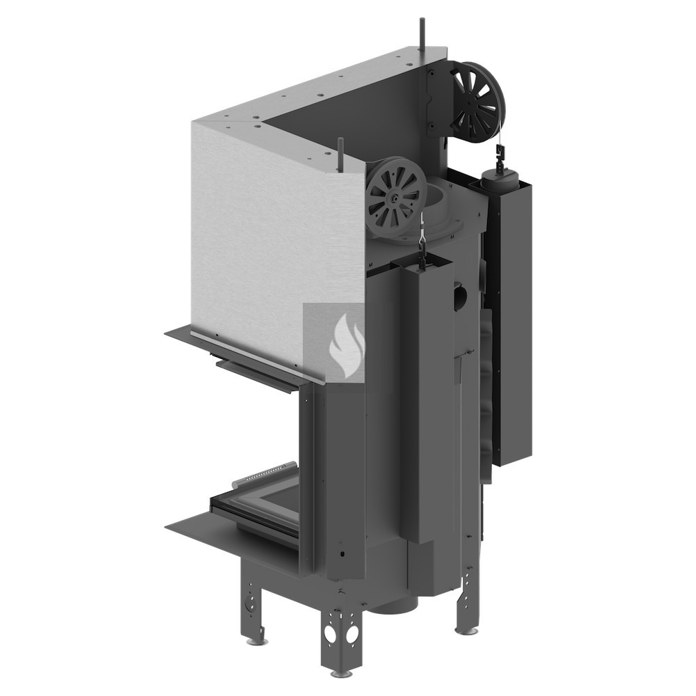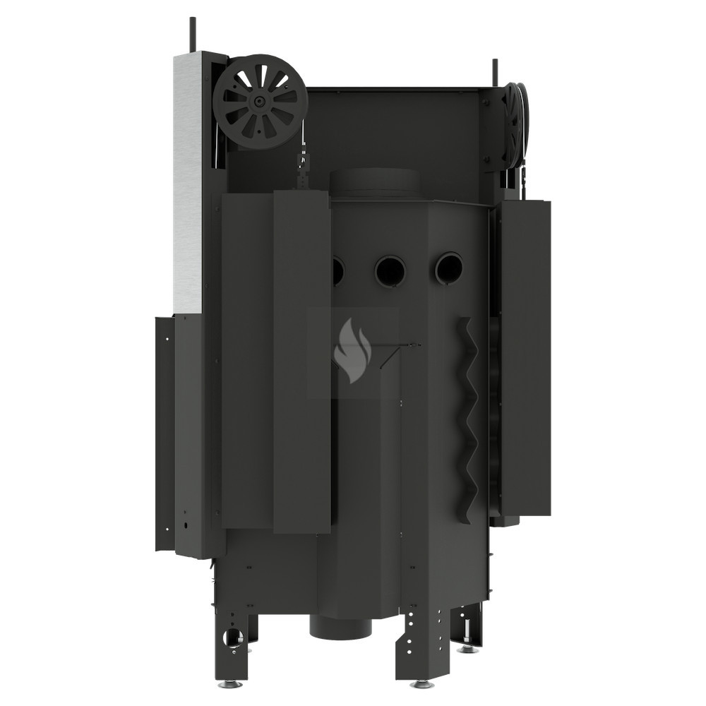 Az ø180 / 200 / 220 / 250 mm-es füstcső biztosítja a kandalló és a kéménycsatorna szoros csatlakozását, biztosítva a megfelelő égést és növelve a hőcsere területét. A hőcsövek növelik a hőcserélési és felhalmozási területet (modelltől függően 3-6 db). Az acél ajtó megnövelt merevségű profilból készült, ami garantálja az ajtó szorosságát és szilárdságát. A hőálló kerámiaüveg (DECOR üveg) akár 800°C-ig ellenáll a működési hőmérsékletnek, és opcionálisan dupla üvegezési rendszerben is elérhető.