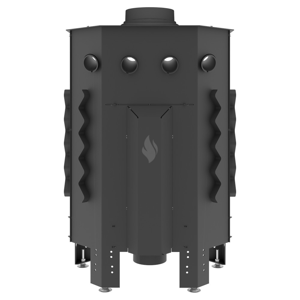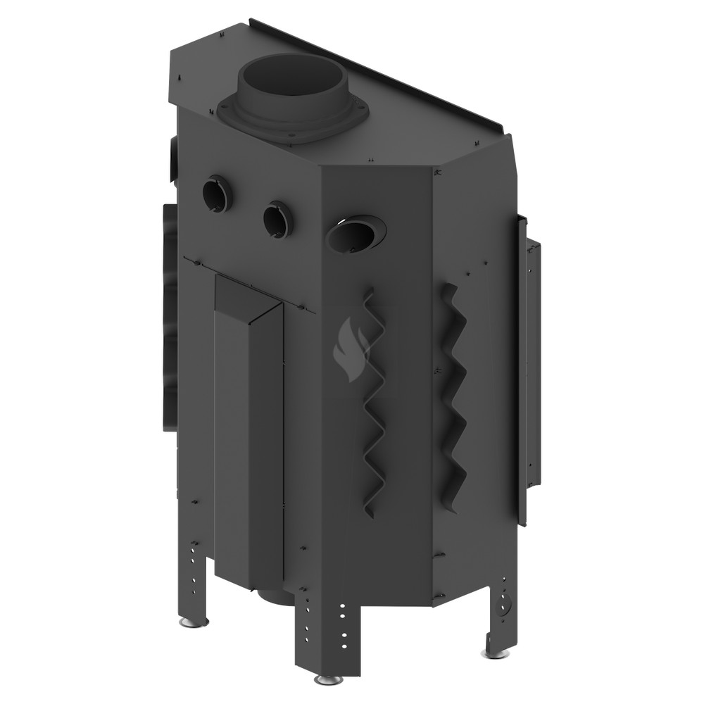 Az ø180 / 200 / 220 / 250 mm-es füstcső biztosítja a kandalló és a kéménycsatorna szoros csatlakozását, biztosítva a megfelelő égést és növelve a hőcsere területét. A hőcsövek növelik a hőcserélési és felhalmozási területet (modelltől függően 3-6 db). Az acél ajtó megnövelt merevségű profilból készült, ami garantálja az ajtó szorosságát és szilárdságát. A hőálló kerámiaüveg (DECOR üveg) akár 800°C-ig ellenáll a működési hőmérsékletnek, és opcionálisan dupla üvegezési rendszerben is elérhető.