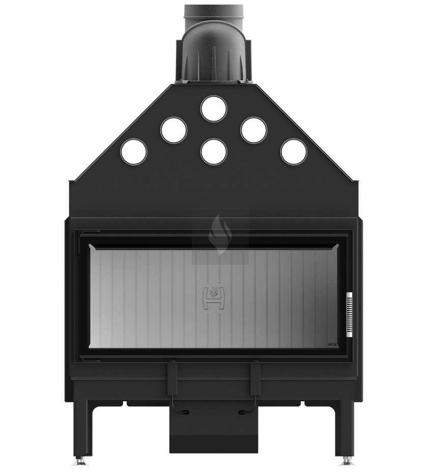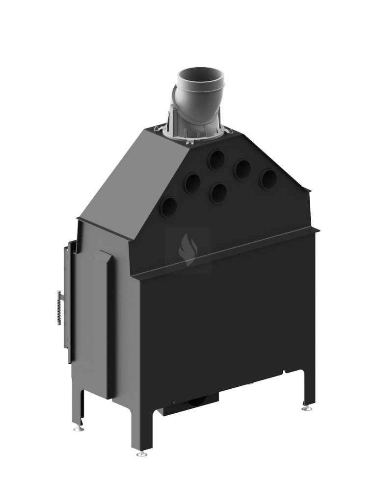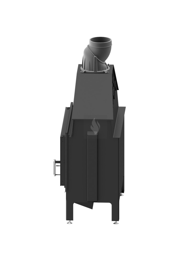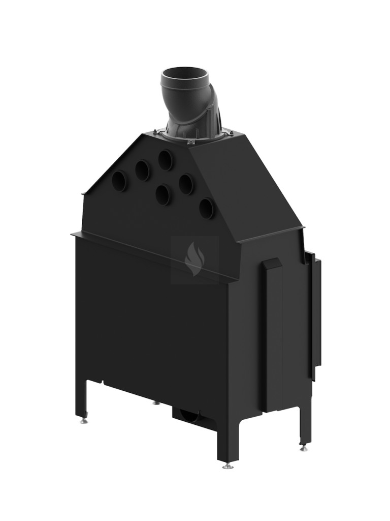 Az öntöttvas füstcső, amely ø200 mm-es és 360°-ban állítható, garantálja a kandalló és a kéménycsatorna szoros csatlakozását, biztosítva a megfelelő égést. Két kerámia deflektor hosszabb égést tesz lehetővé, meghosszabbítva a füstgáz útját és optimalizálva az égési folyamatot. A hőcserélő csövek (három darab) növelik a hőcserélési és felhalmozási területet. A masszív acél test 30%-kal nagyobb súlyú, és a fontos elemek 5 mm vastag P265GH kazánlemezből készülnek.