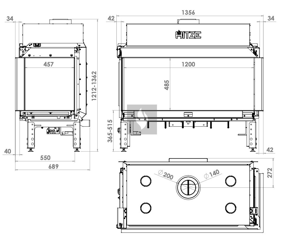 HITZE CALMA 120 RG saroküveges jobbos gázkandalló