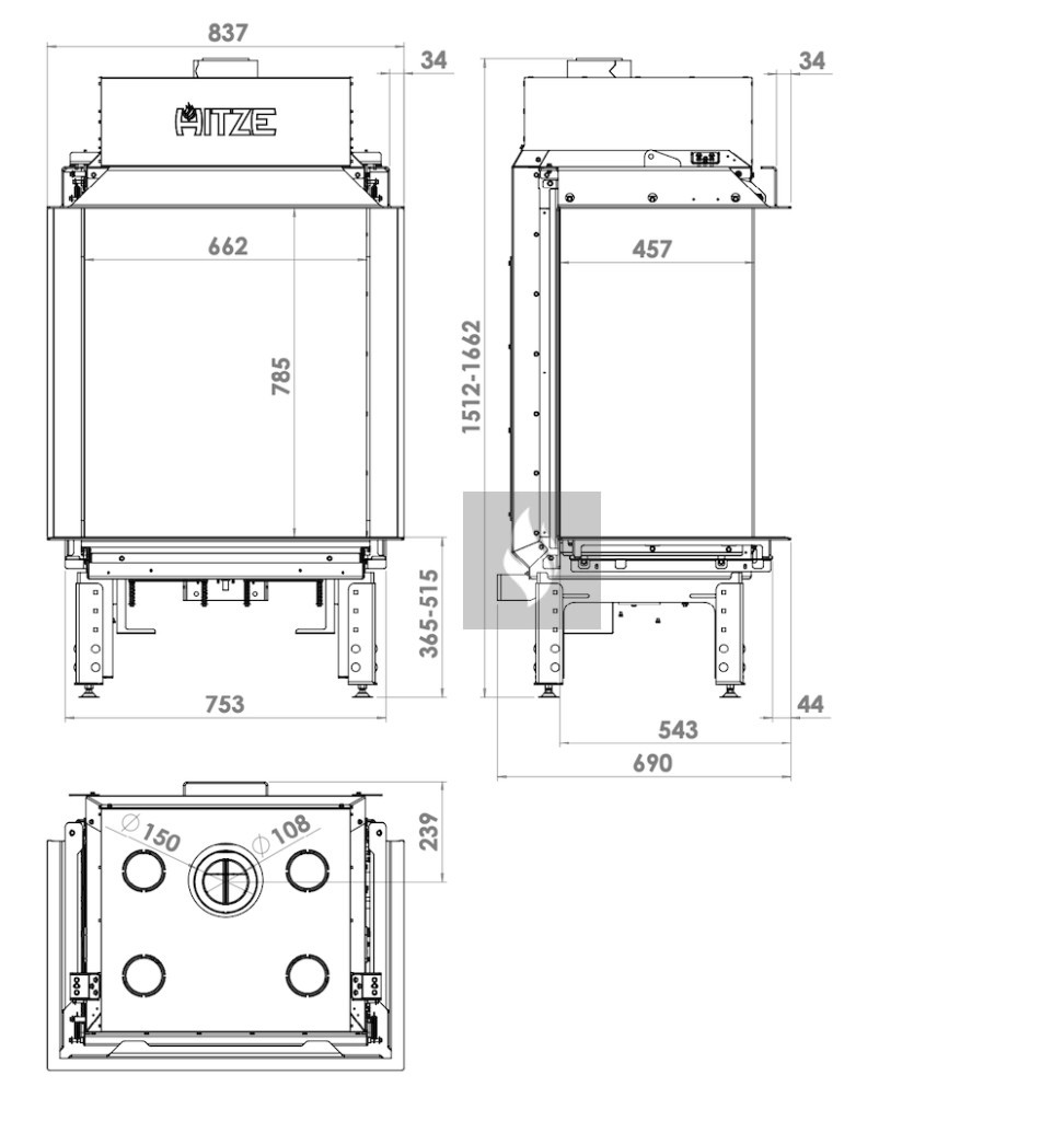 HITZE CALMA 65 TC 3 oldali C üveges gázkandalló