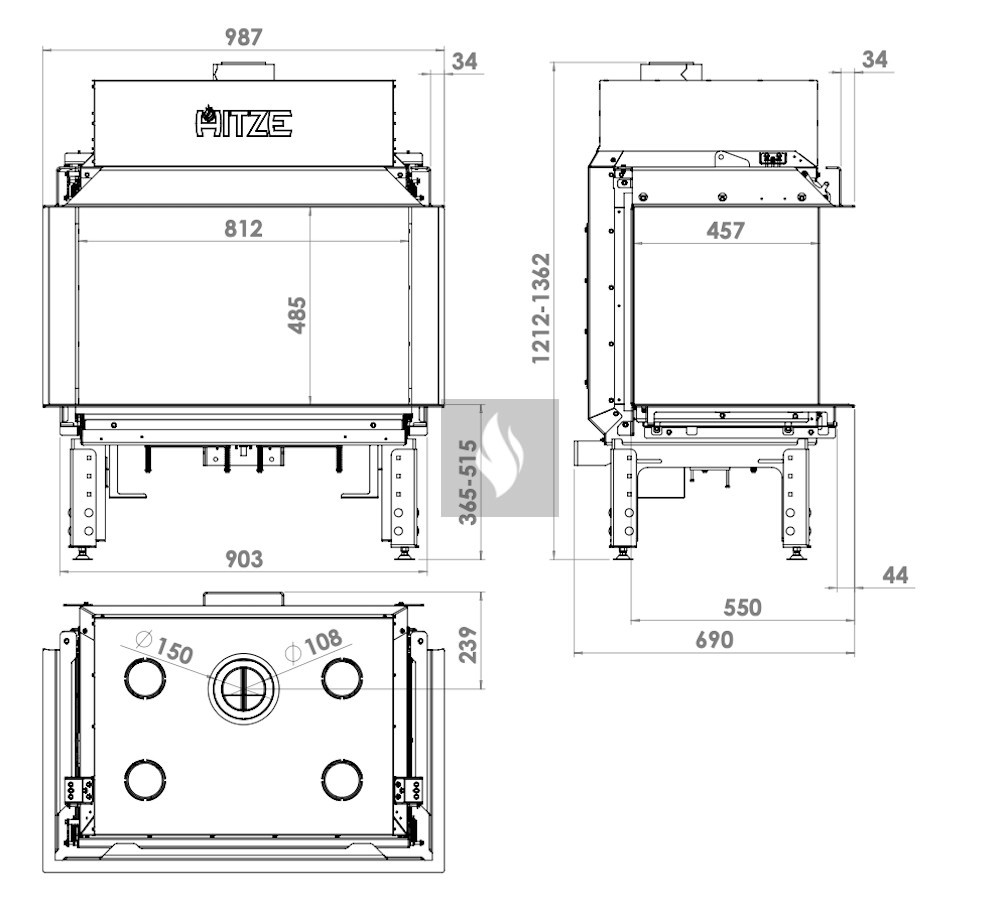 HITZE CALMA 80 TC 3 oldali C üveges gázkandalló