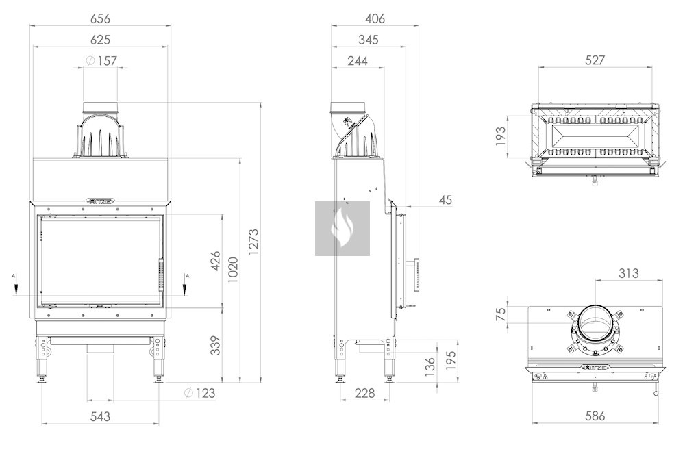 Az integrált, négy szintű fojtószelep ø125 mm-es beömlővel szabályozza az elsődleges és másodlagos levegő áramlását. A rostély nélküli égéstér kényelmes tisztítást tesz lehetővé egy hamuporszívóval. Az EASY UP állítható lábak biztonságos és stabil elhelyezést biztosítanak a kandallóbetét számára, és finoman szabályozhatók 4 cm-es tartományban, lépésenként 0-4, 5-9, 13,5 cm-ig. Az EASY START rendszer pedig független levegőszabályozással segíti a tűzgyújtást.