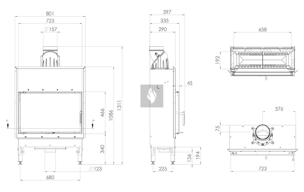 Az integrált, négy szintű fojtószelep ø125 mm-es beömlővel szabályozza az elsődleges és másodlagos levegő áramlását. A rostély nélküli égéstér kényelmes tisztítást tesz lehetővé egy hamuporszívóval. Az EASY UP állítható lábak biztonságos és stabil elhelyezést biztosítanak a kandallóbetét számára, és finoman szabályozhatók 4 cm-es tartományban, lépésenként 0-4, 5-9, 13,5 cm-ig. Az EASY START rendszer pedig független levegőszabályozással segíti a tűzgyújtást.