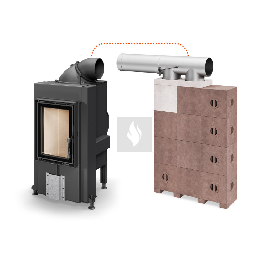 Az animáció jól szemlélteti, hogy amint a füstgáz a lángterelőt eléri, az két oldalra tereli a távozó füstöt. Ennek következtében a hő optimálisan oszlik el és mindez pozitív hatással van az égő lángok esztétikájára is, mivel sokkal inkább teljes szélességben égnek.