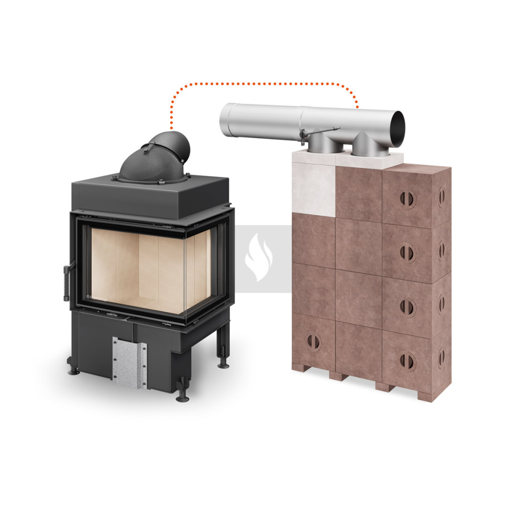 Az animáció jól szemlélteti, hogy amint a füstgáz a lángterelőt eléri, az két oldalra tereli a távozó füstöt. Ennek következtében a hő optimálisan oszlik el és mindez pozitív hatással van az égő lángok esztétikájára is, mivel sokkal inkább teljes szélességben égnek.