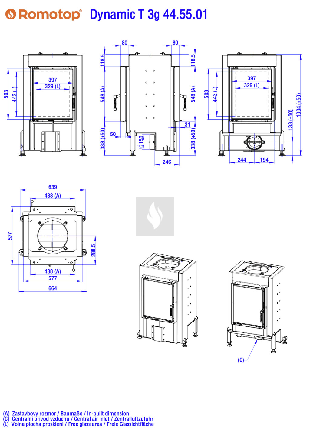 Romotop DYNAMIC T 3G 44.55.01 Légfűtéses kandallóbetét